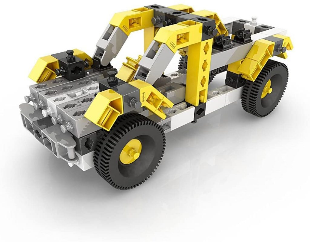 Các kỹ sư trẻ khám phá các nguyên tắc chính của STEM (Khoa học, Công nghệ, Kỹ thuật và Toán học) trong khi họ dự trữ kho Engino của mình với tối đa 12 xe tải và xe tải khác nhau mà họ chế tạo từ đầu! Bộ công cụ kỹ thuật sang trọng này bao gồm bản in và hướng dẫn trực tuyến để chế tạo: một bãi cỏ, máy xúc, xe tải tiện ích, xe bán tải, xe nâng có răng tháo lắp, v.v.