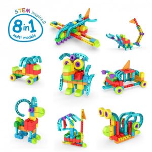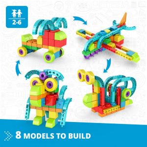 Các bạn có hàng giờ chơi sáng tạo và cải thiện khả năng phối hợp tay mắt và tư duy không gian, với các khối, que và đầu nối đầy màu sắc, dễ xử lý của chúng tôi. Xây dựng lên đến 8 mô hình vui nhộn khác nhau: nhà chơi, bập bênh, chuồng ngựa với 2 con ngựa, lạc đà, gà, ếch, gremlin và robot. Khi bạn hoàn thành việc xây dựng tất cả 8, hãy tách rời và xây dựng lại!